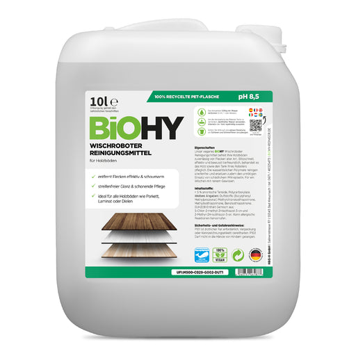 Our 100% vegan BiOHY floor cleaner for wiping robots is perfect for the reliable cleaning of all water-resistant hard floors, such as tiles, PVC, l...